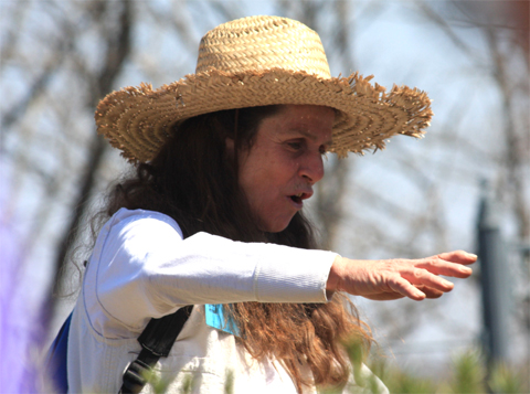 |  Tina Marie Wilcox proudly informs that, at her urging, the restaurant at the Folk Center, The Skillet, now uses only recyclable take out containers.  | Not far from Susan, the folk center's gardener of almost 30 years, Tina Marie Wilcox, enthusiastically gesticulated and firmly stomped the now fertile soil emphasizing, "Use everything you can think of to 'make your garden grow'. Compost veggie and fruit waste, put that newspaper down to discourage weeds, don't burn those fallen leaves; use 'em for mulch. And shred those fallen limbs for use on paths." Wilcox believes that almost 100% of what most consider 'garbage' can be used, not discarded to fill up more landfills.